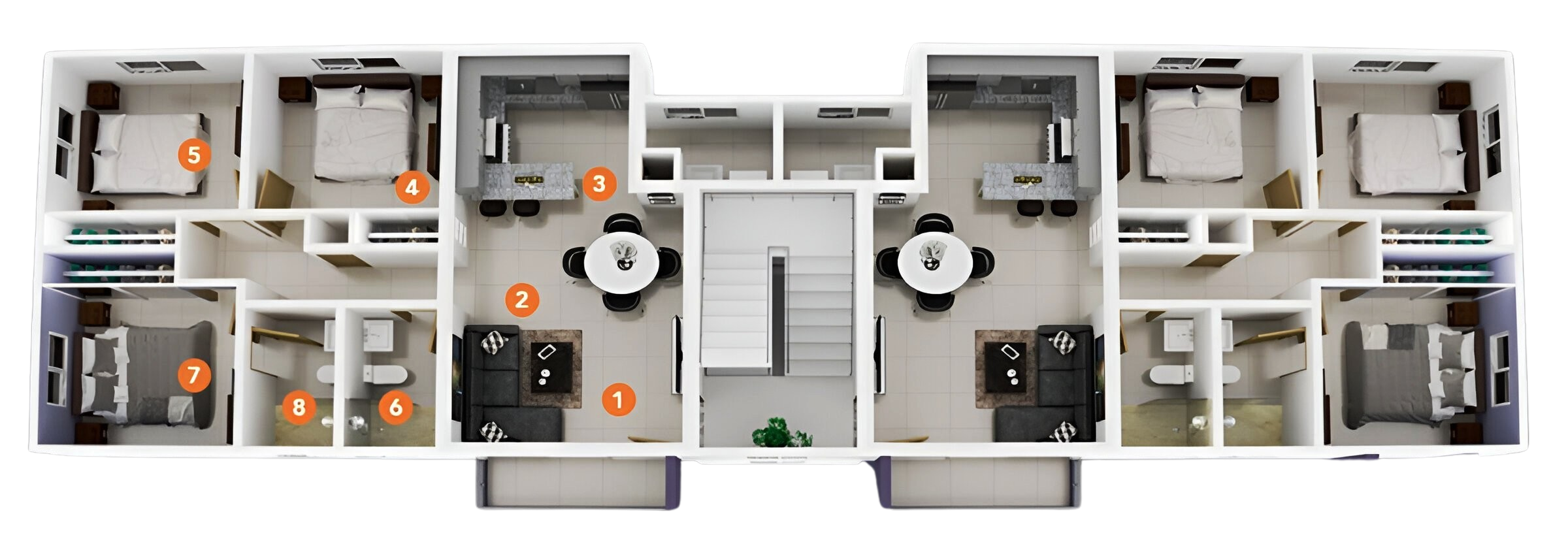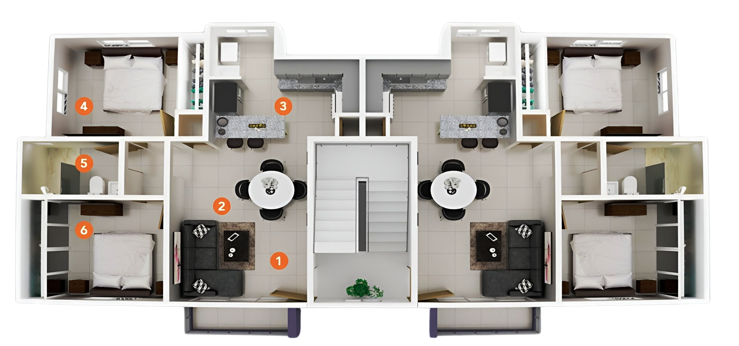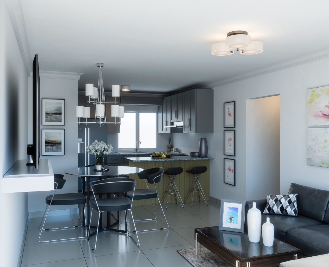 Todos los apartamentos cuentan con los espacios comunes completamente abiertos incluyendo una amplia cocina moderna para acoger las familias que le gusta compartir en grupo. El núcleo de habitaciones y baños fueron diseñados para proporcionar privacidad para las familias con un estilo de vida más íntimo. Nuestra fachada cuenta con elementos naturales y estructurales que resaltan la elegancia del proyecto.