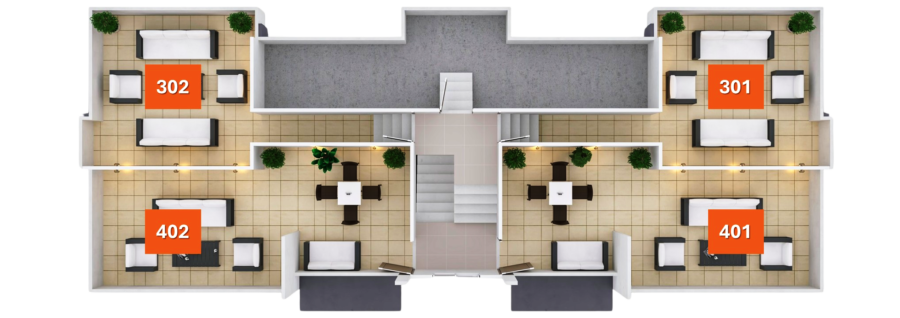Sabemos lo mucho que te gustan las terrazas, por eso decidimos retomar el papel y lápiz para rediseñar nuestros espacios de techo. Ahora la tercera y cuarta planta tendrán acceso a su terraza privada, a donde podrán compartir en un espacio abierto y exclusivo con sus amistades.